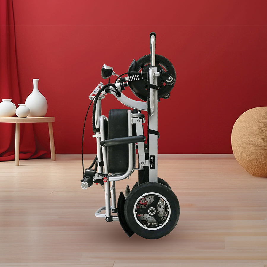 The Compact Collection offers personal mobility devices designed for effortless maneuverability and compact folding for versatile indoor use. MOBOT's folding three-wheel mobility scooters and lightweight e-wheelchairs provide a small turning radius. These folding models fit easily into smaller spaces and adapt to your lifestyle, making them ideal for quick storage and seamless transitions from room to room.