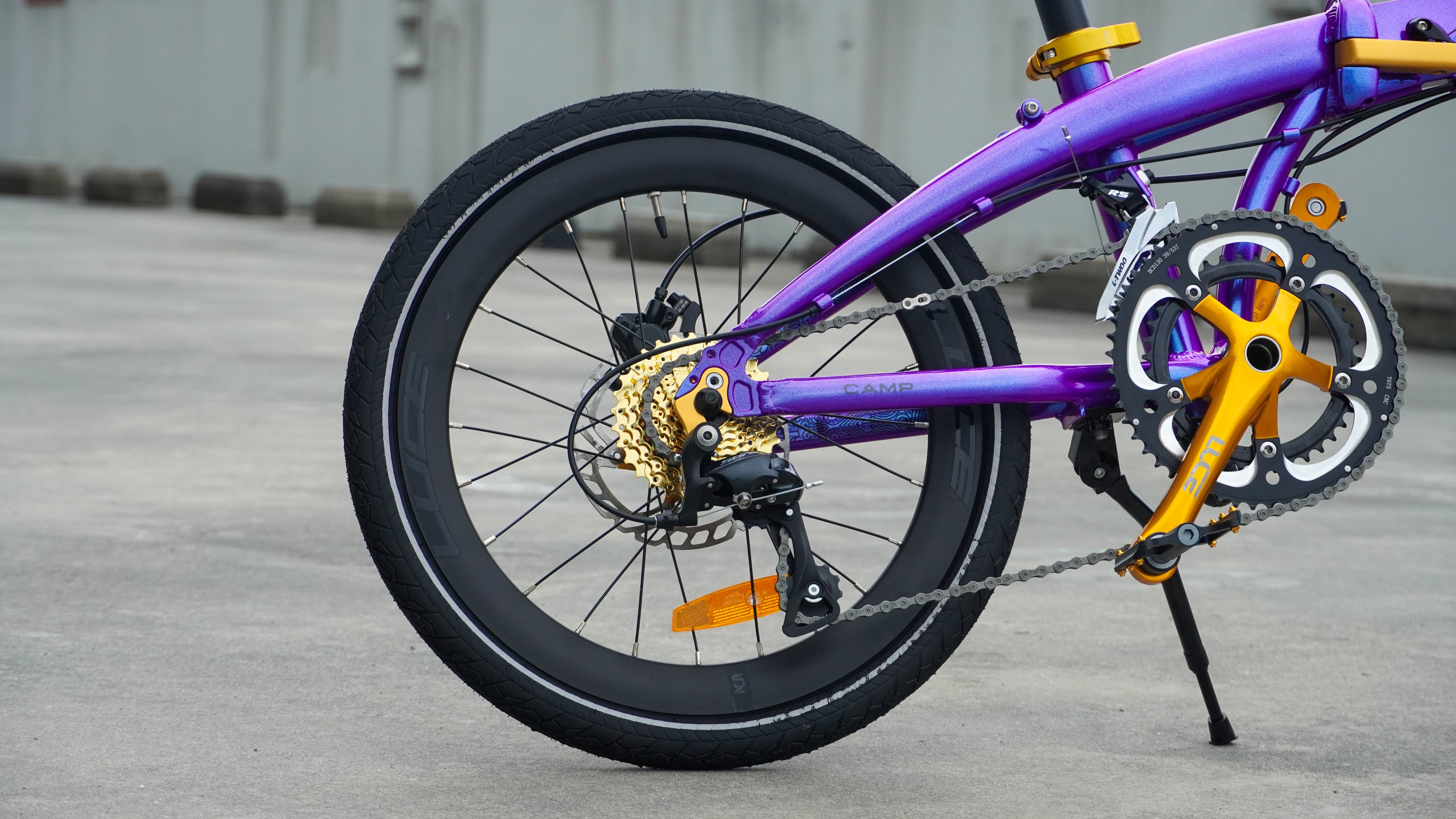 The CAMP Gold is a high-performance, lightweight, and compact foldable bike weighing just 10.95kg, making it one of the lightest in its category. Crafted with CAMP Aluminum high-performance composite, the frame is corrosion-resistant, lightweight, and offers a high strength-to-weight ratio for a solid ride, whether climbing or handling tight corners. Its 20-inch pneumatic tyres provide a smooth ride with longer tread life, low rolling resistance, and excellent grip for racing and all-around use, plus reflective strips for added safety. Equipped with TEKTRO hydraulic disc brakes front and rear, the CAMP Gold ensures responsive and reliable stopping power.