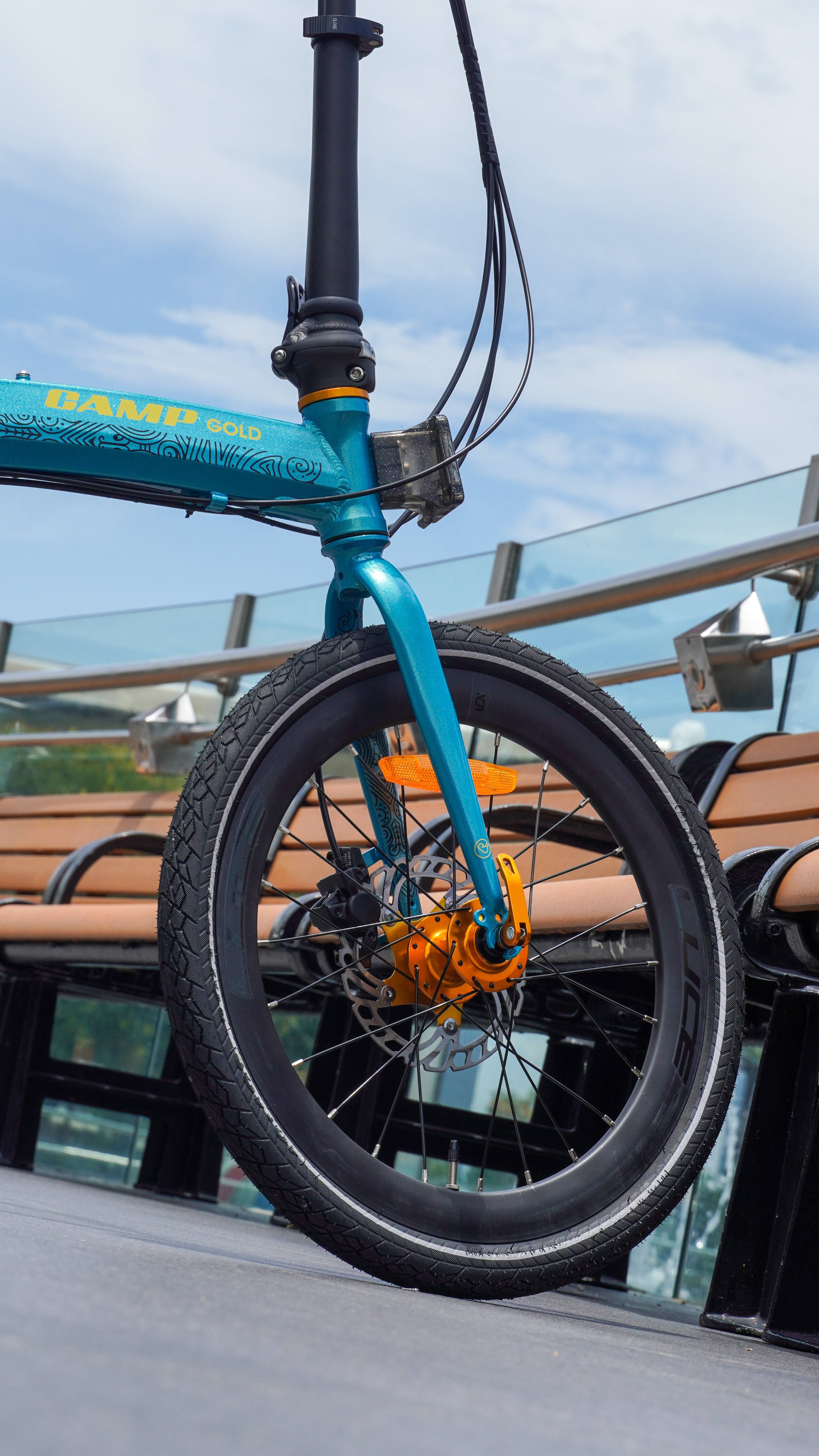 The CAMP Gold is a high-performance, lightweight, and compact foldable bicycle weighing just 10.95kg, making it one of the lightest in its category. Crafted with a corrosion-resistant CAMP Aluminum high-performance composite frame, it offers a perfect balance of strength and lightness for a solid ride, whether climbing or maneuvering in tight spots.