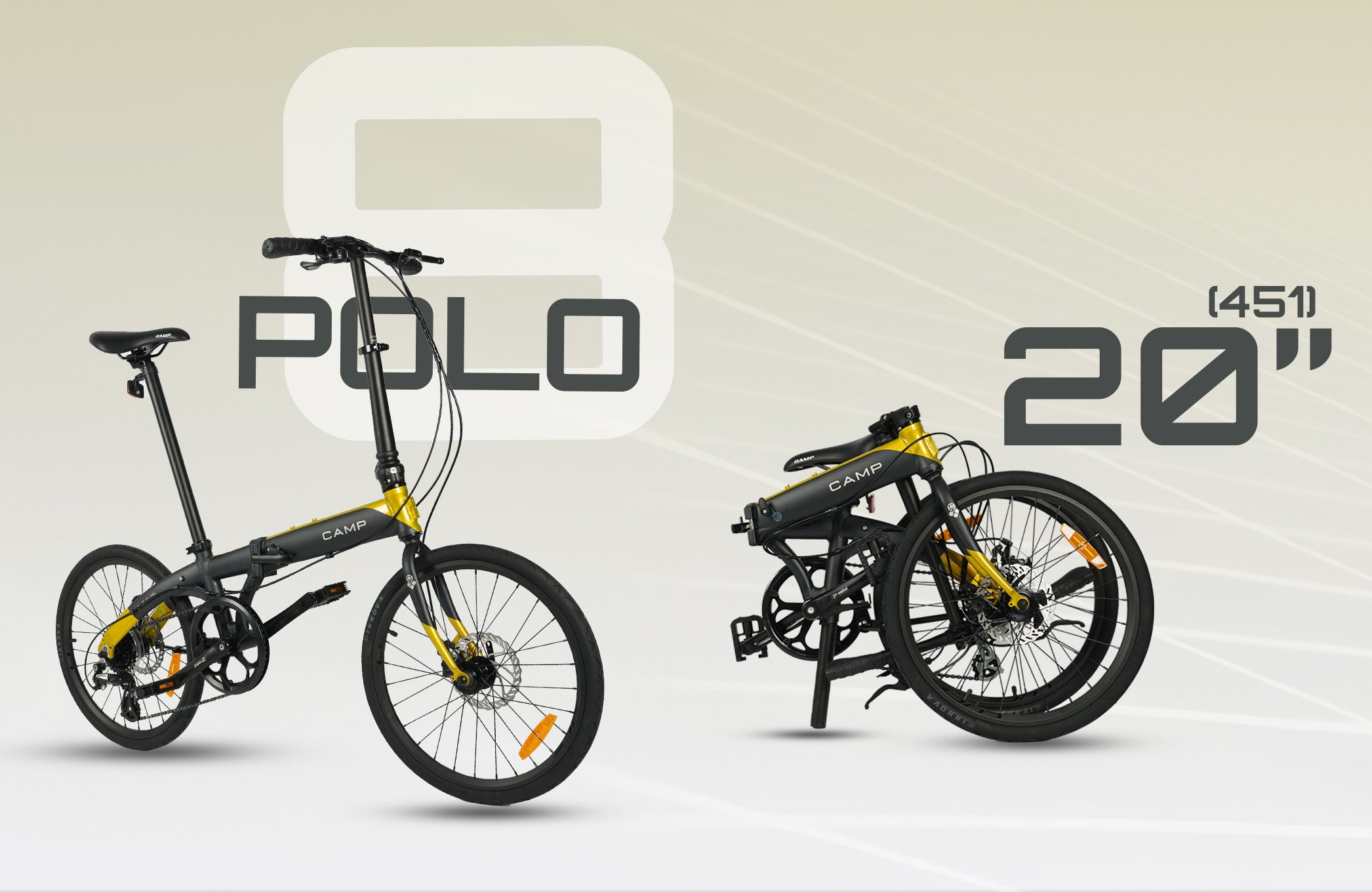 The CAMP Polo 8 is an upgraded, value-for-money foldable bike featuring 451 tires and mechanical disc brakes, perfect for riders looking to explore with larger tires. Equipped with a SHIMANO Altus 8-speed drivetrain, it offers smooth shifting and reliable performance. With a durable aluminum frame and effective front and rear mechanical disc brakes, the CAMP Polo 8 combines affordability and quality in one versatile foldable bike.