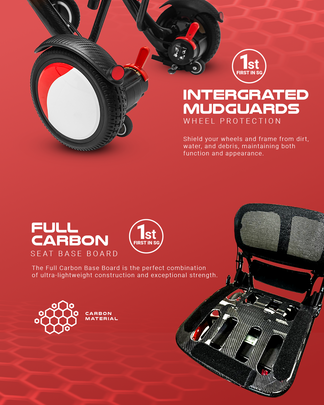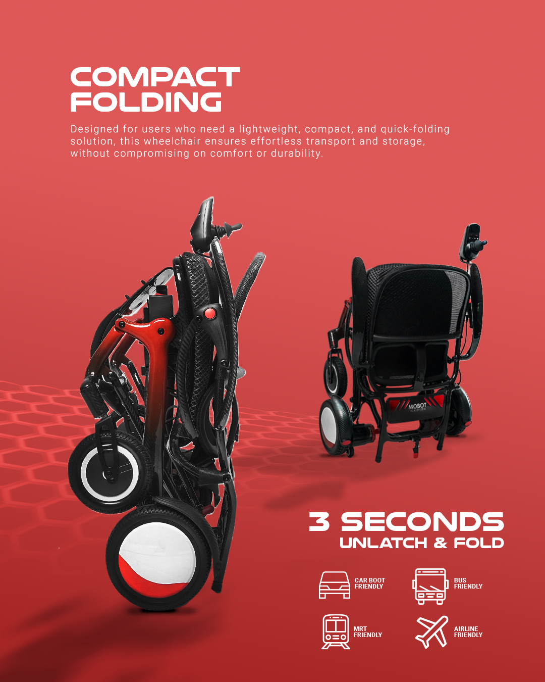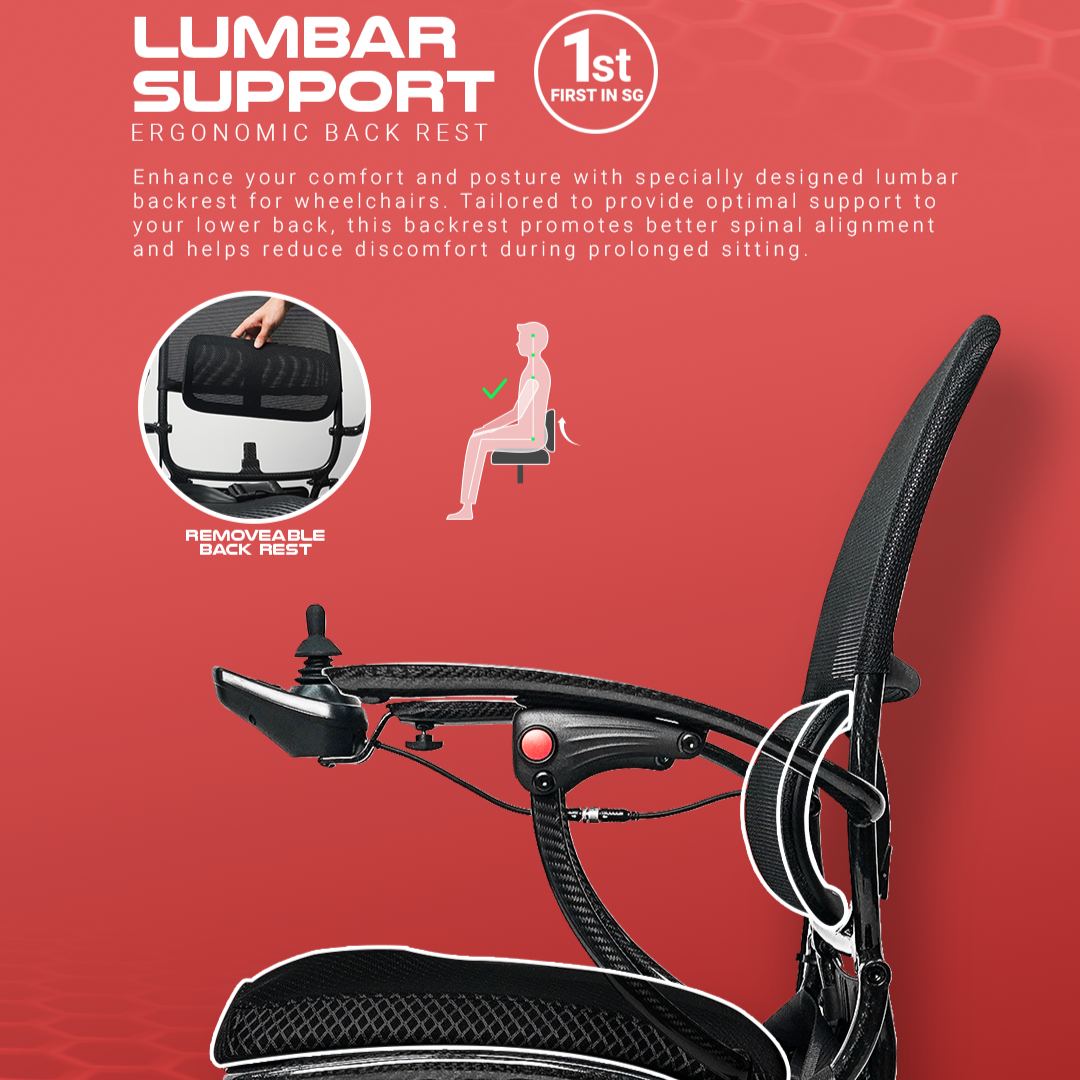 The MOBOT Ergowheel Carbon is Singapore's first ergonomic carbon electric wheelchair, blending advanced features with a lightweight design.