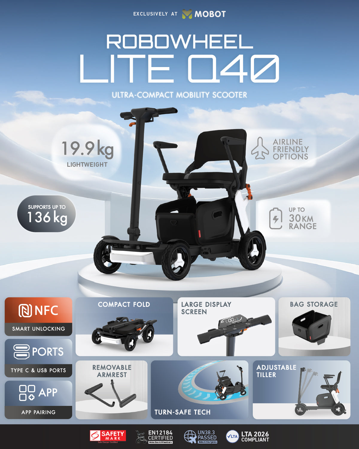 ROBOWHEEL Lite Q40: Smartest Lightweight Mobility Scooter with Ultra Compact Fold