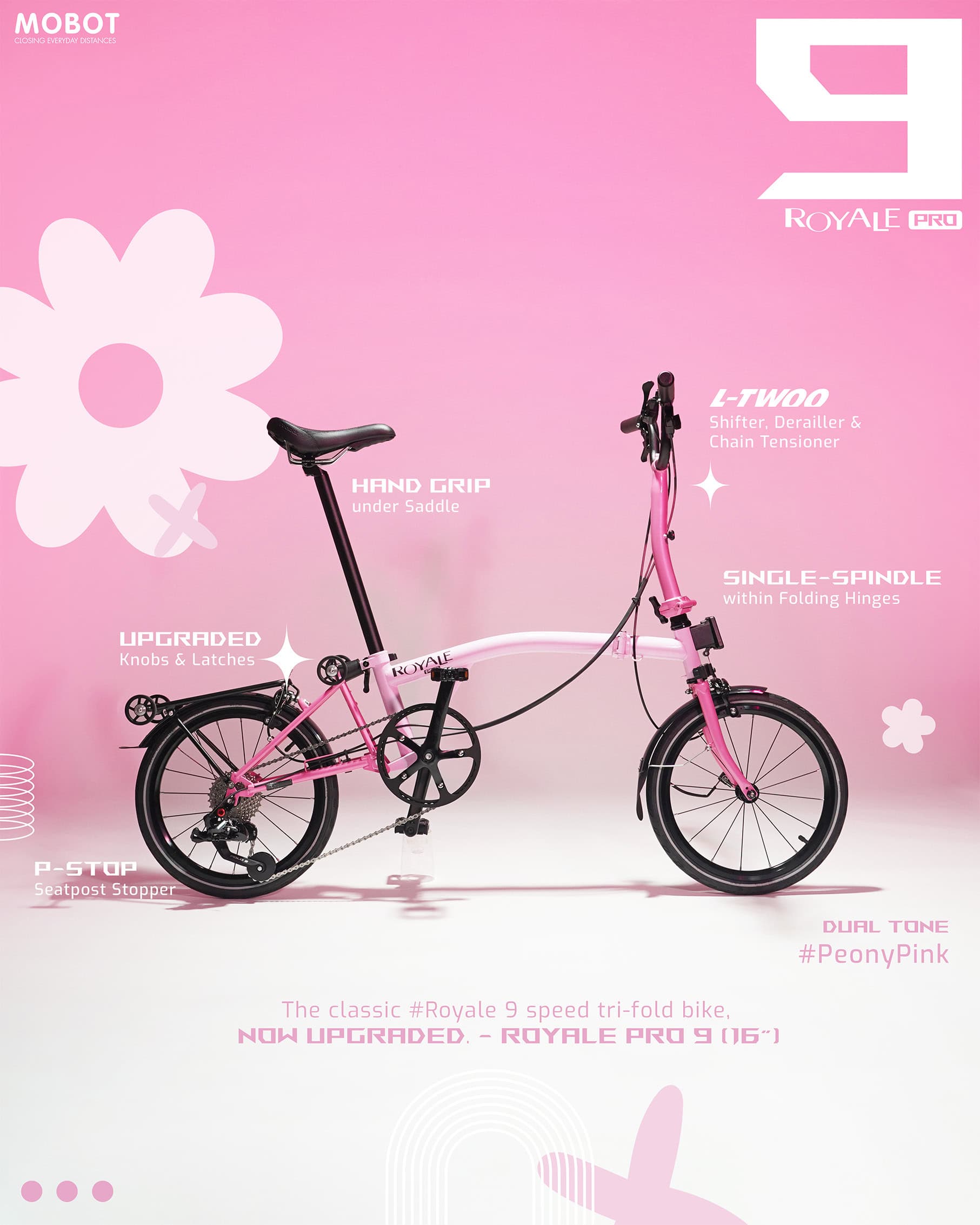 Engineered for performance and convenience, the ROYALE Pro 9 (16”) is a lightweight 10.7kg¹ folding bike with LTWOO components, quick-release wheels, and a P-stop seat post stopper. With a 50T chainring and 11-28T cassette, it delivers smooth, efficient riding—perfect for city commutes and urban adventures.